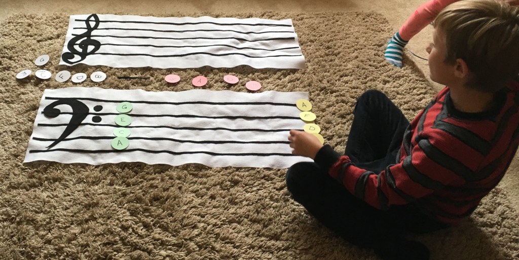 - A large grand staff and keyboard to support kinesthetic/tactile learners